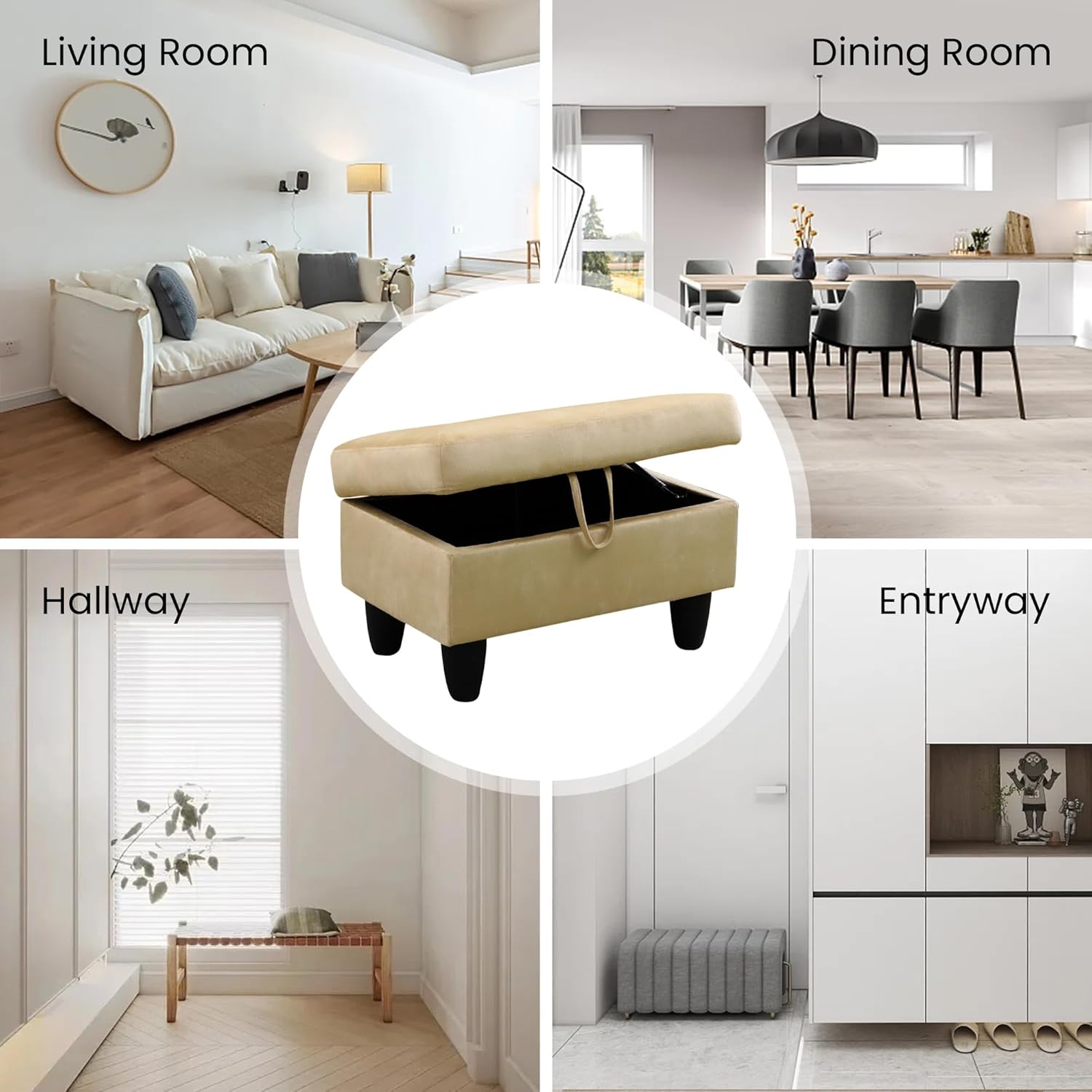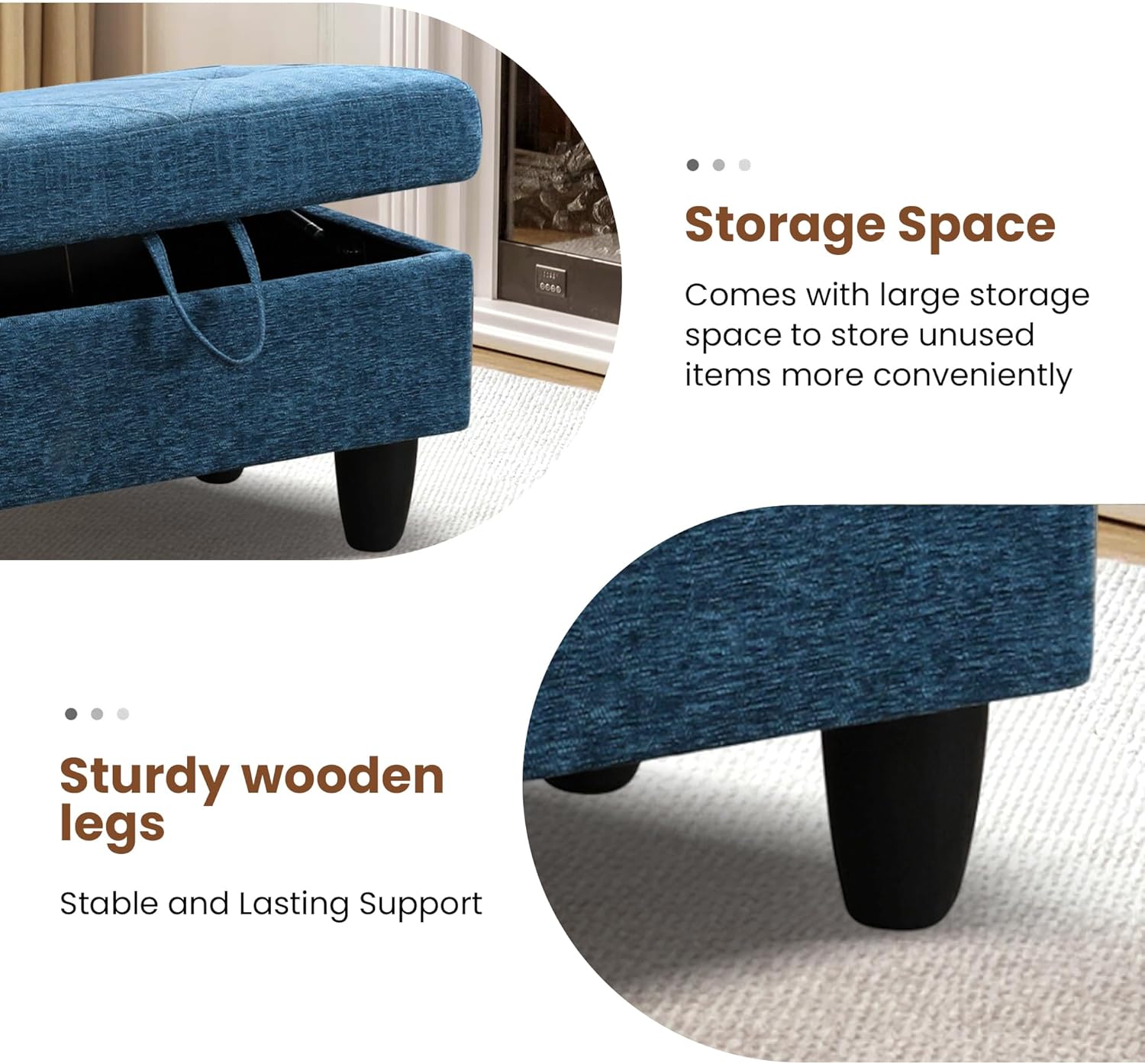 The SumKea storage ottoman bench proves to be an excellent end-of-bed bench, increasing the aesthetic appeal and practicality of any bedroom. Its sizeable storage compartment, accessed through a hydraulic rod system, serves as an end-of-bed storage bench. Here, you can seamlessly store your extra blankets, pillows, or books. The ottoman also effortlessly doubles as an ottoman coffee table or a storage bench for bedroom accessories, making it a versatile essential in any home.