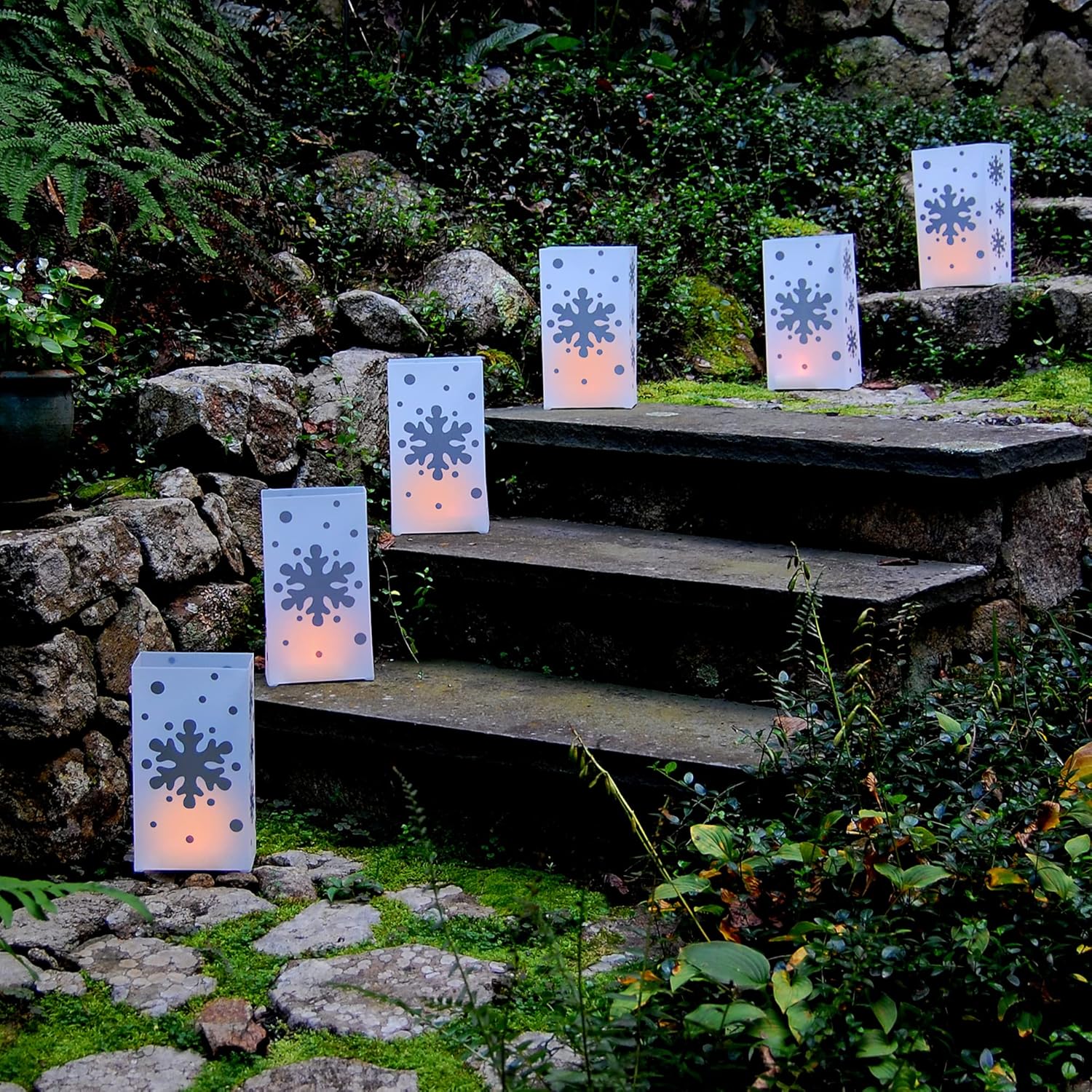 Electric luminarias bring a lovely ambiance your outdoor décor by adding warmth and light to a walkway, driveway, sidewalk or entryway. Beautiful luminarias welcome guests with a festive tone for a party or special occasion. Durable weather resistant luminarias are reusable and can be enjoyed through the entire season. For outdoor use only.
