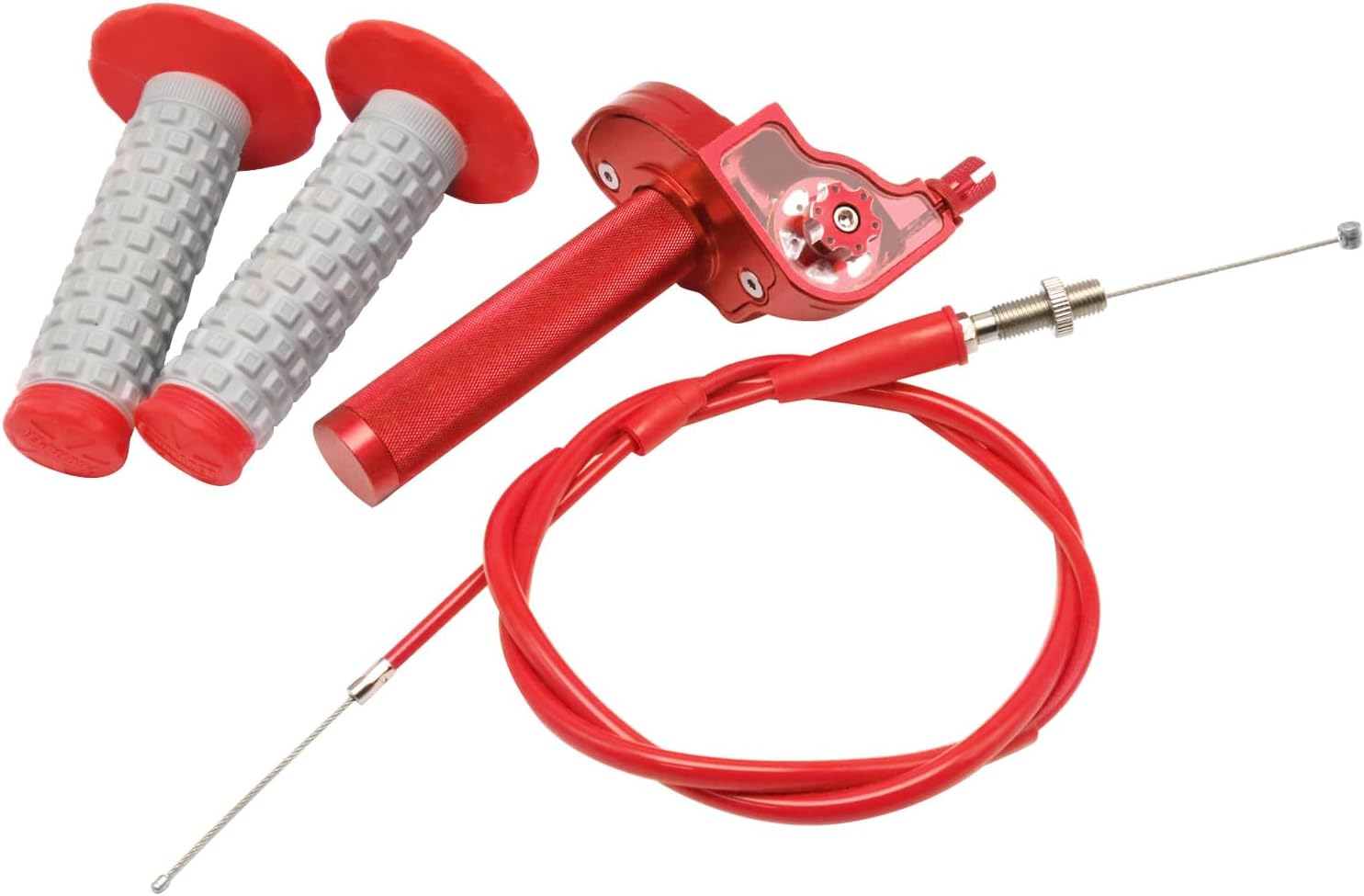 YWLUWEI Throttle Grip Motorcycle 7/8" 22mm CNC Aluminum Quick Twister with Throttle Cable And Handlebar Grip For CRF50 KLX SSR TTR 110 125 150 200 250cc Dirt Pit Bike ATV Mini BikeFeature:1.100% Brand New, Never Mounted2.Easy to install, durable service.3.Color: Red/Blue/Green/Gold/Silver/Black4.Inner Diameter: 22mm5.Material: CNC 6061-T6 Aluminum Alloy6.Complete modification kit, convenient and quickly. Easy to install, durable service.7.Suitable for all 7/8" 22mm motorcycle handlebars and you can apply it to any Dirt pit bike atv motocross mini bike.Package Includes:1 * Throttle Wire1 * Throttle Twist Grip CNC1 * Handlebar GripInstruction of Installation is NOT Included