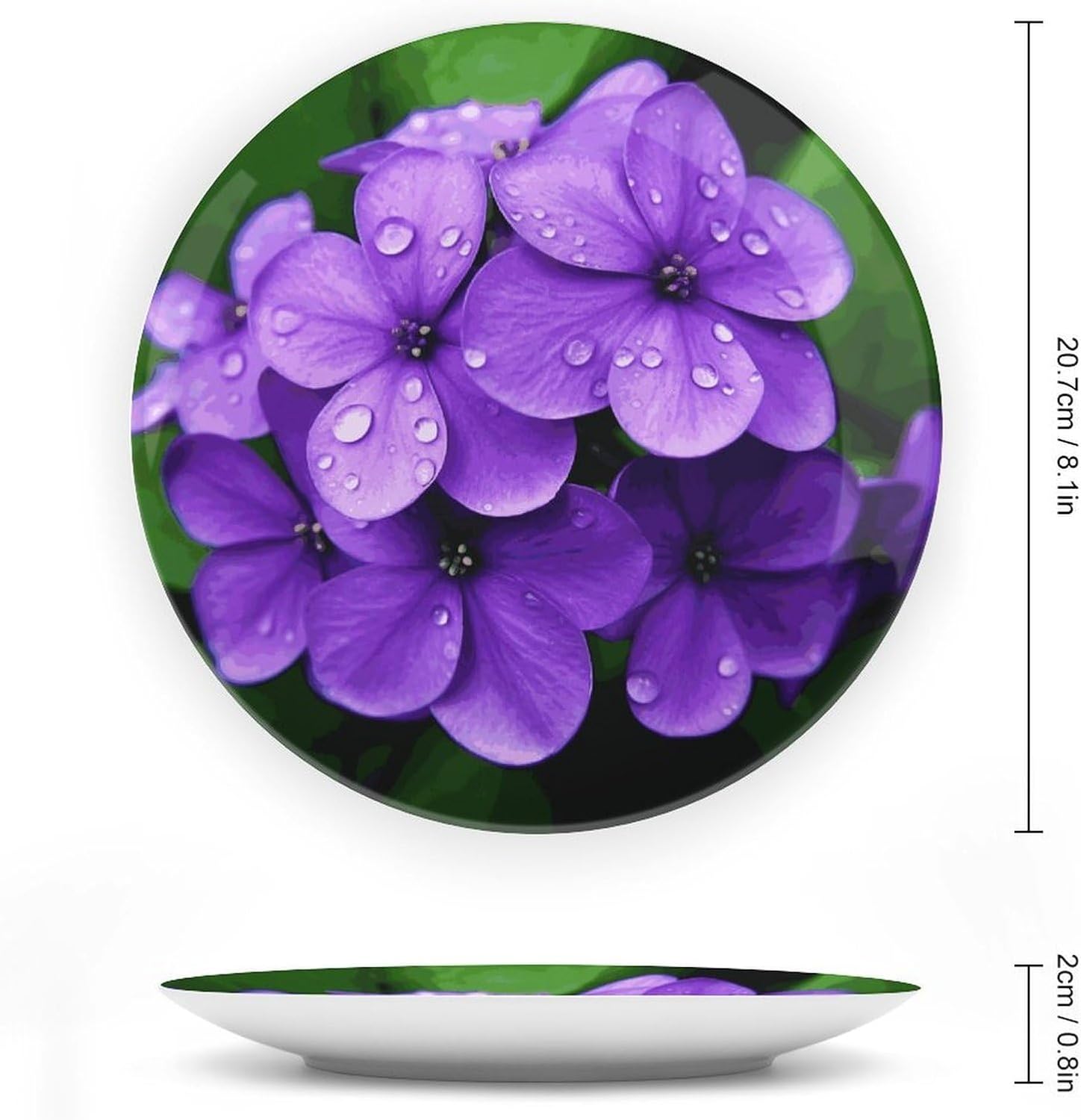 • 【4 size & stylish design】Available in 6, 7, 8, or 10" sizes, our Violet Flower ceramic plates are perfect for festive home decor, shelves, or wall hangings. Includes a sturdy stand, hook, and self-adhesive for versatile display uses.
